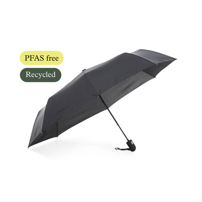 Article No. 20334602NEW! Key is a compact and durable umbrella that offers great value for money – a smart choice when you want to combine function, quality, and environmental awareness. This umbrella stands out because it is completely PFAS-free and made with care for both people and the planet. Instead of the traditional water-repellent treatment, we have chosen an alternative method free from harmful chemicals. The umbrella features panels made from R-PET fabric, which reduces its climate footprint and provides a more sustainable lifecycle. The strong metal shaft and flexible fiberglass ribs offer stability even in windy conditions, while the automatic opening makes it easy to handle with one hand. The rubberized handle with a wrist strap ensures a comfortable and secure grip – even when the rain is pouring down. With a diameter of 99 cm, Key provides generous rain protection while folding down to just 32 cm – perfect to carry in your bag or briefcase.