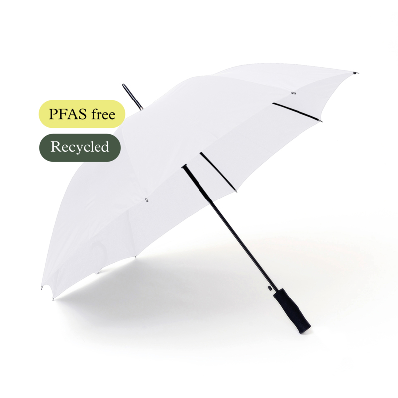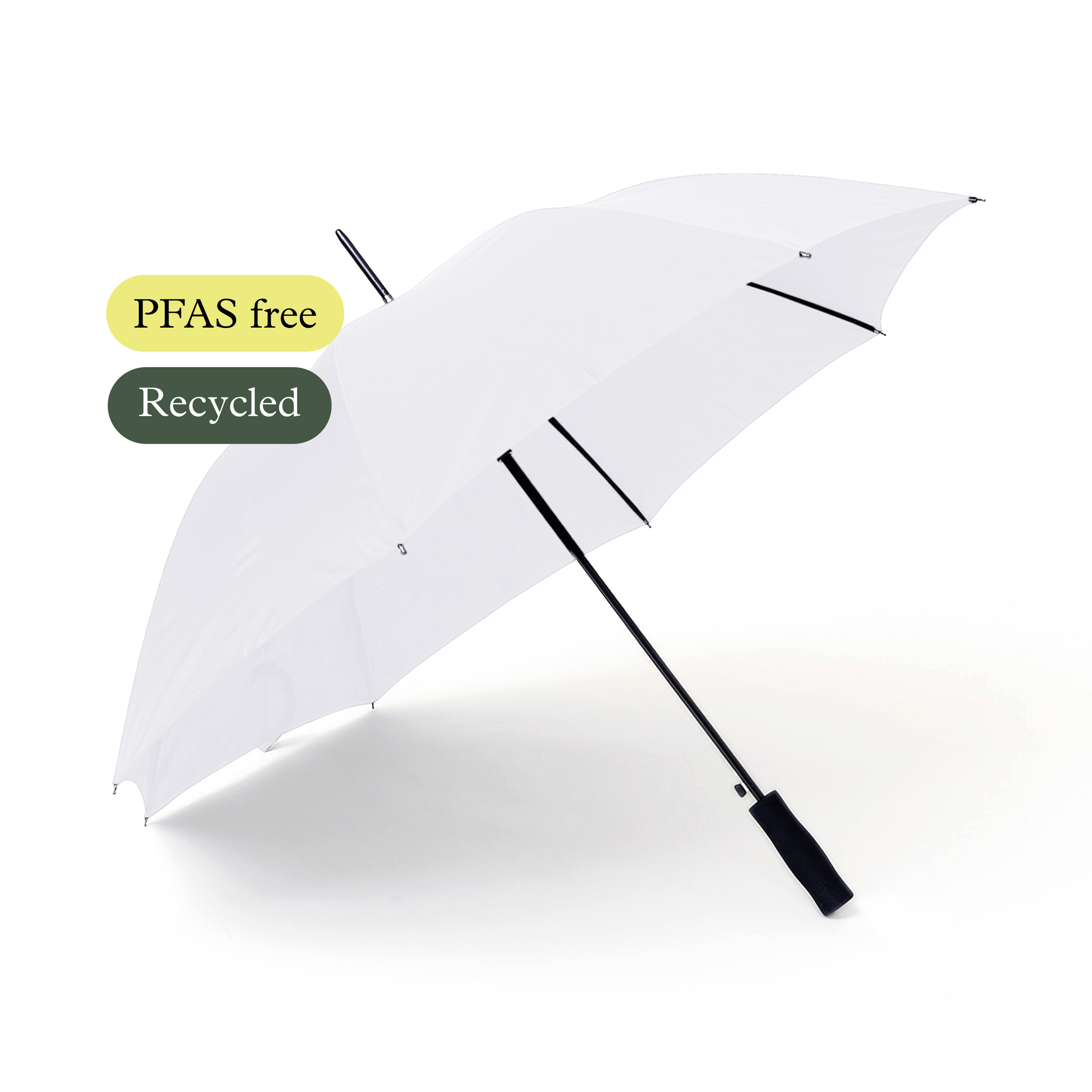 Material PFAS-free, R-PET Pongee, fiberglass ribs, metal shaft, EVA handle