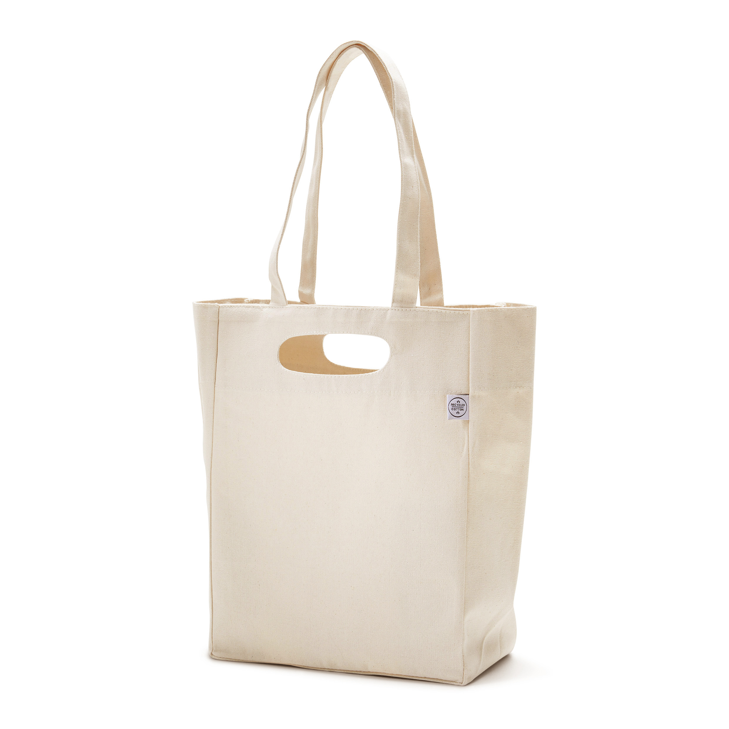 Heavy-duty carrier bag in 320 gram recycled cotton with double handles, (one pair recessed and one pair of long). This is a 320 gram bag with a rough feel that is an environmentally conscious choice at a really good price. Learn more about recycled cotton by clicking the info button after the material below.