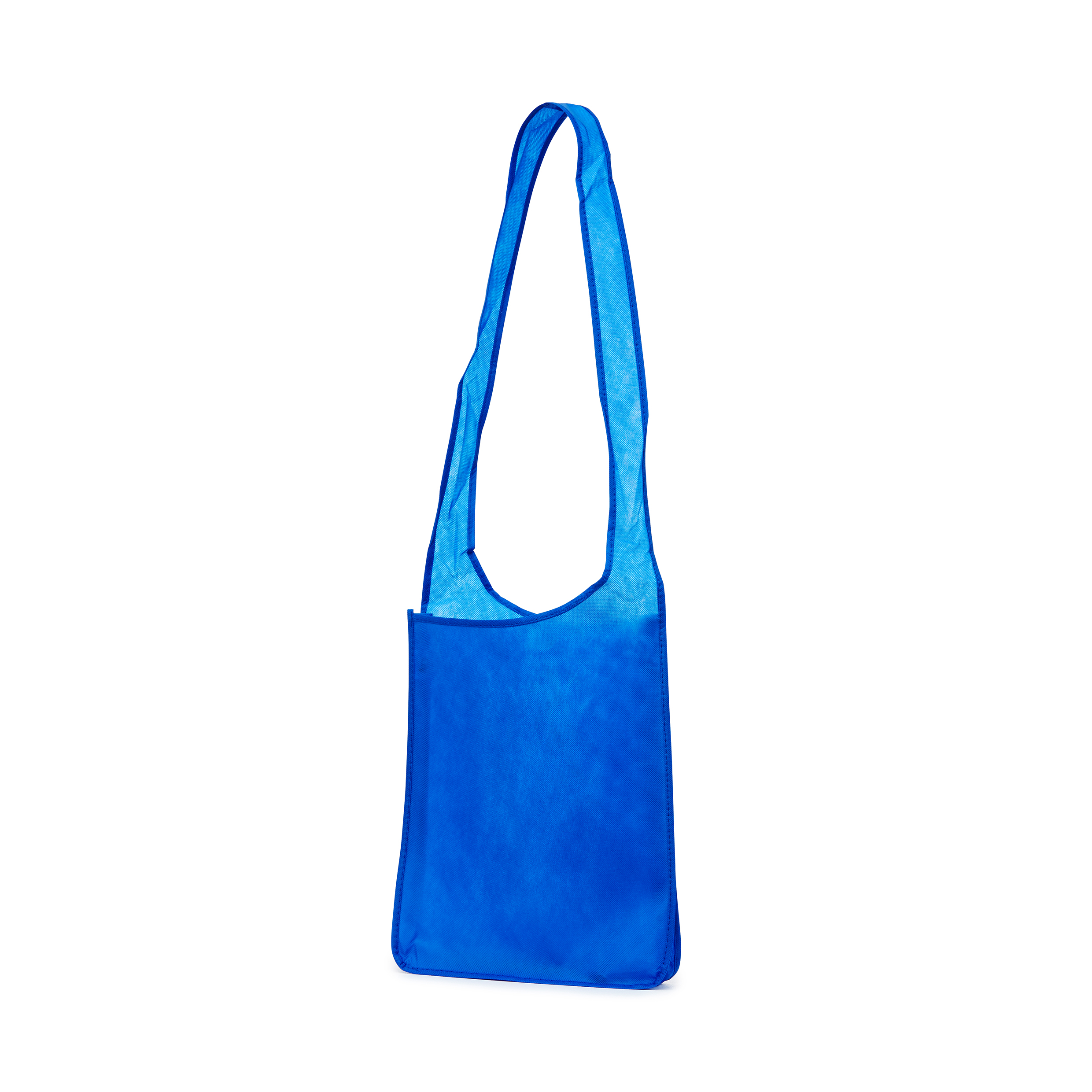 Article No. 41075700A "cross over" bag in durable non-woven material with bottom and side gussets for extra space. The handle is designed so that the bag can be carried diagonally. Please note: Printing price only for 1-color printing. For multi-color printing - contact us for a quote.