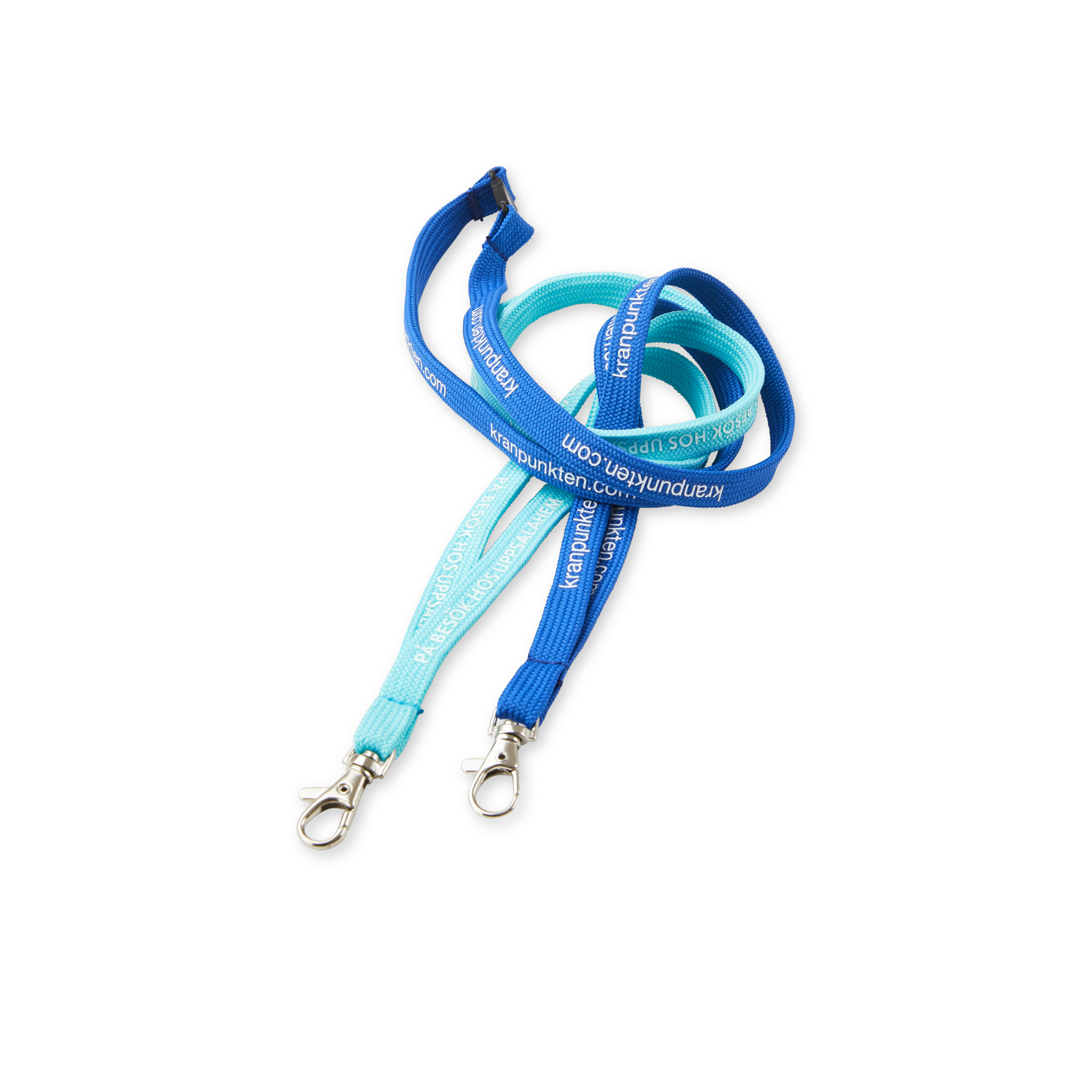 Popular lanyard in tube-woven knitting. 900 mm long x 10 mm wide. It is also available in 12 and 15 mm widths. Optional PMS on the band at no extra cost. Repeated 1-color print, snap hook and safety buckle included. Minimum order quantity: 100 pcs. If extra printing color is desired, 0.80 SEK / color will be added. Film charge 780 SEK / color (Recommended price).