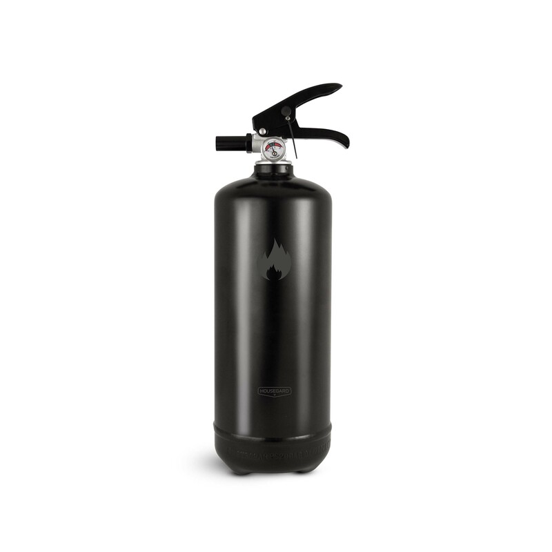 Powder fire extinguisher 2 kg, in white or black. Intended for home environments, where the user can be expected to know