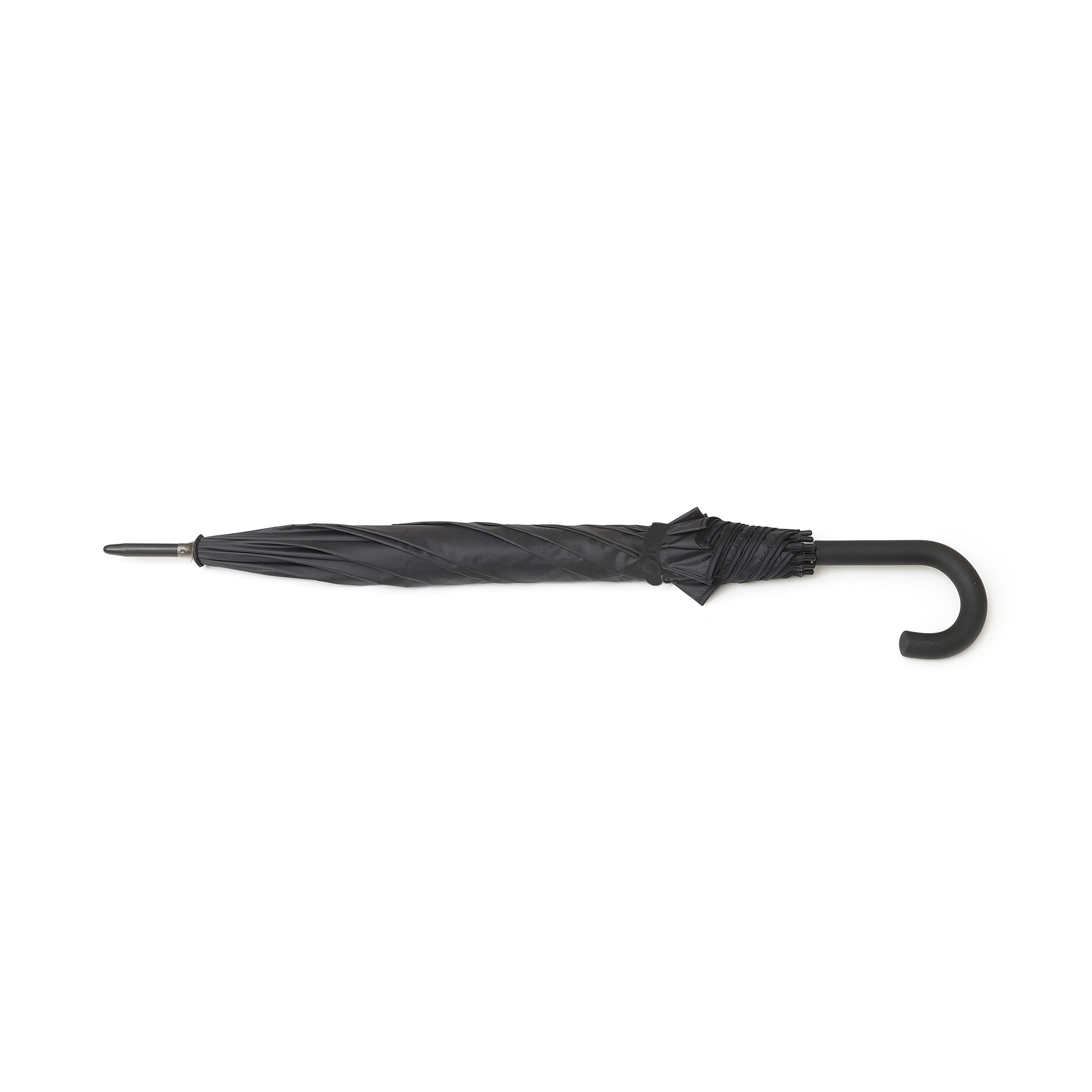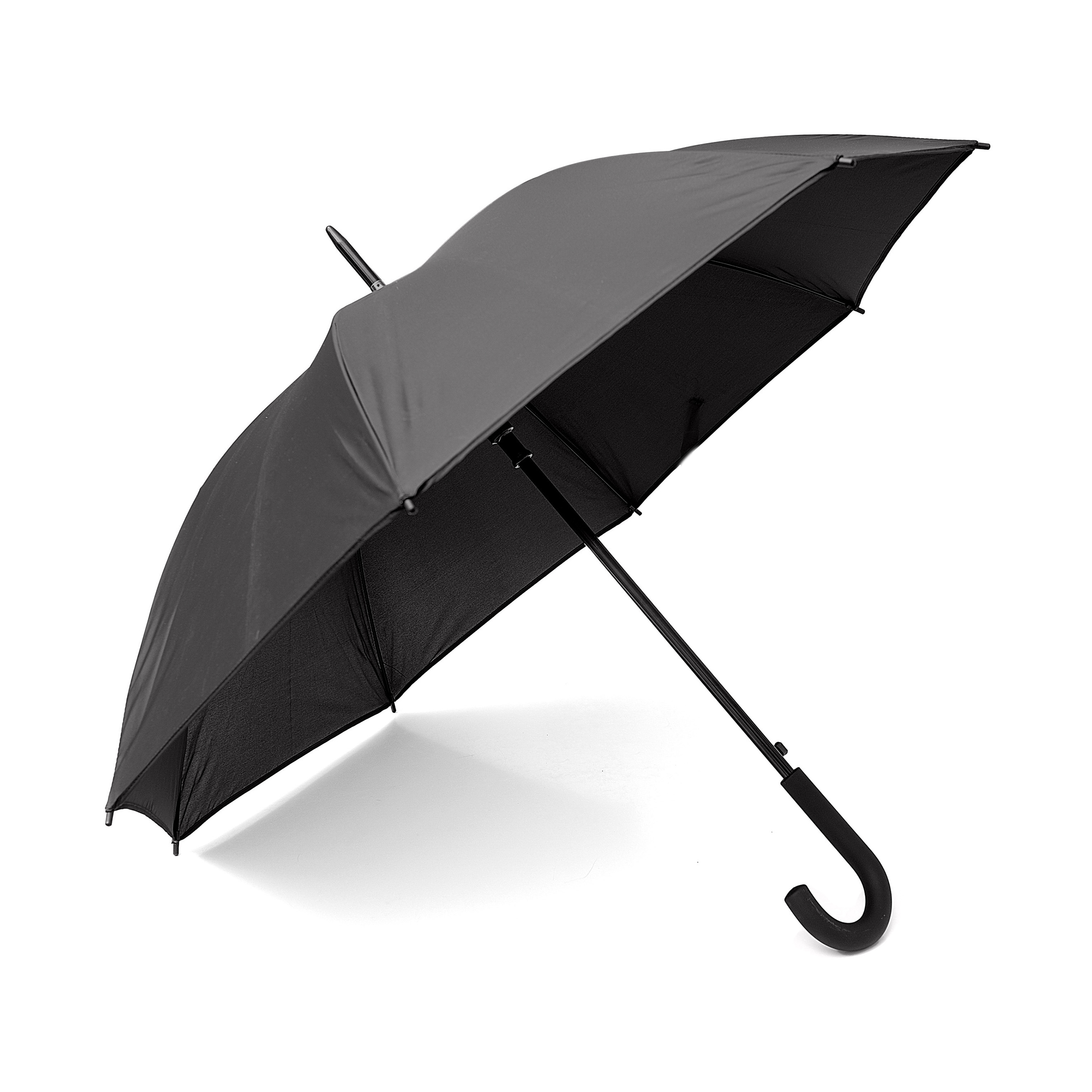 Article No. 20154602Paraply Black är ett stilrent och pålitligt paraply för dig som vill ha både design och funktion i ett. Det helsvarta utförandet ger ett sofistikerat uttryck, medan det J-formade, gummerade handtaget ger ett stabilt och bekvämt grepp – även i regn och blåst. Med automatisk uppfällning fälls paraplyet upp snabbt och smidigt när regnet överraskar. Ett gummerat spänne med knapp adderar en diskret men elegant detalj som förstärker den moderna designen. Paraply Black är PFAS-fritt och tillverkat av R-PET, ett material framställt av återvunna plastflaskor. Det gör paraplyet till ett mer hållbart val med lägre klimatpåverkan och längre livslängd. Med en diameter på 106 cm erbjuder det gott om skydd, och den hopfällda längden på 86 cm gör det lätt att bära och förvara – perfekt för stadsliv, pendling och vardagsbruk. Paraply Black är skapat för att hålla – med fokus på kvalitet, hållbarhet och tidlös design som står emot både vind och regn.