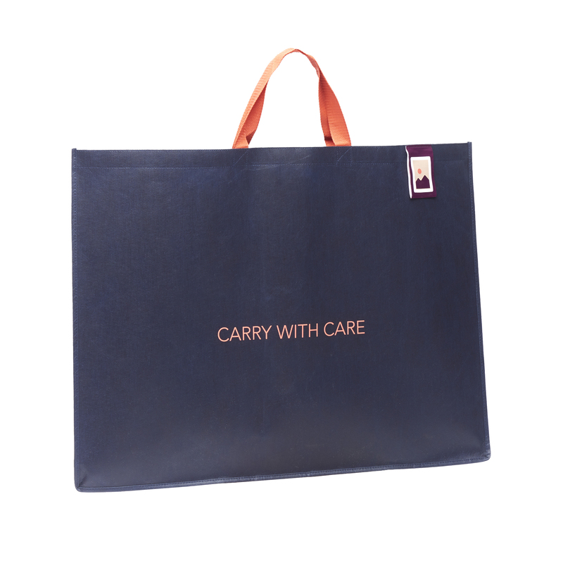 Artnr. 41139900Denna kraftiga non woven bag kan skräddarsys till din kunds ändamål. Vi hoppas kunna inspirera till olika användningsområden genom storleksanpassning och starka handtag. Många bär skyltmaterial, tavlor och ritningar, tygprover eller annat presentations-material i denna typ av kassar. Bagen tillverkas efter dina önskemål med färg, form, enskilt - eller utfallande tryck, handtag och tillbehör som vävda etiketter och hangtags. Vi hjälper dig gärna med skisser! Detta exempel har sydda sömmar och starka polyesterhandtag, vilket gör att den är lite slitstarkare än andra non woven bagar. Nedan pris är endast en indikation. Det är ett prisexempel vid 3000 st i storlek 75 x 55 cm, med tyg i tillgänglig lagernyans samt ett 1-färgstryck på en sida. Minsta beställningsantal är 1000 st. Produktionstid ca 8 veckor efter godkänt prov. Vi förespråkar båtfrakt för miljöns och fraktekonomins skull. Lev.tid ca 8 veckor. Hör av dig för skarp offert till just dina önskemål.